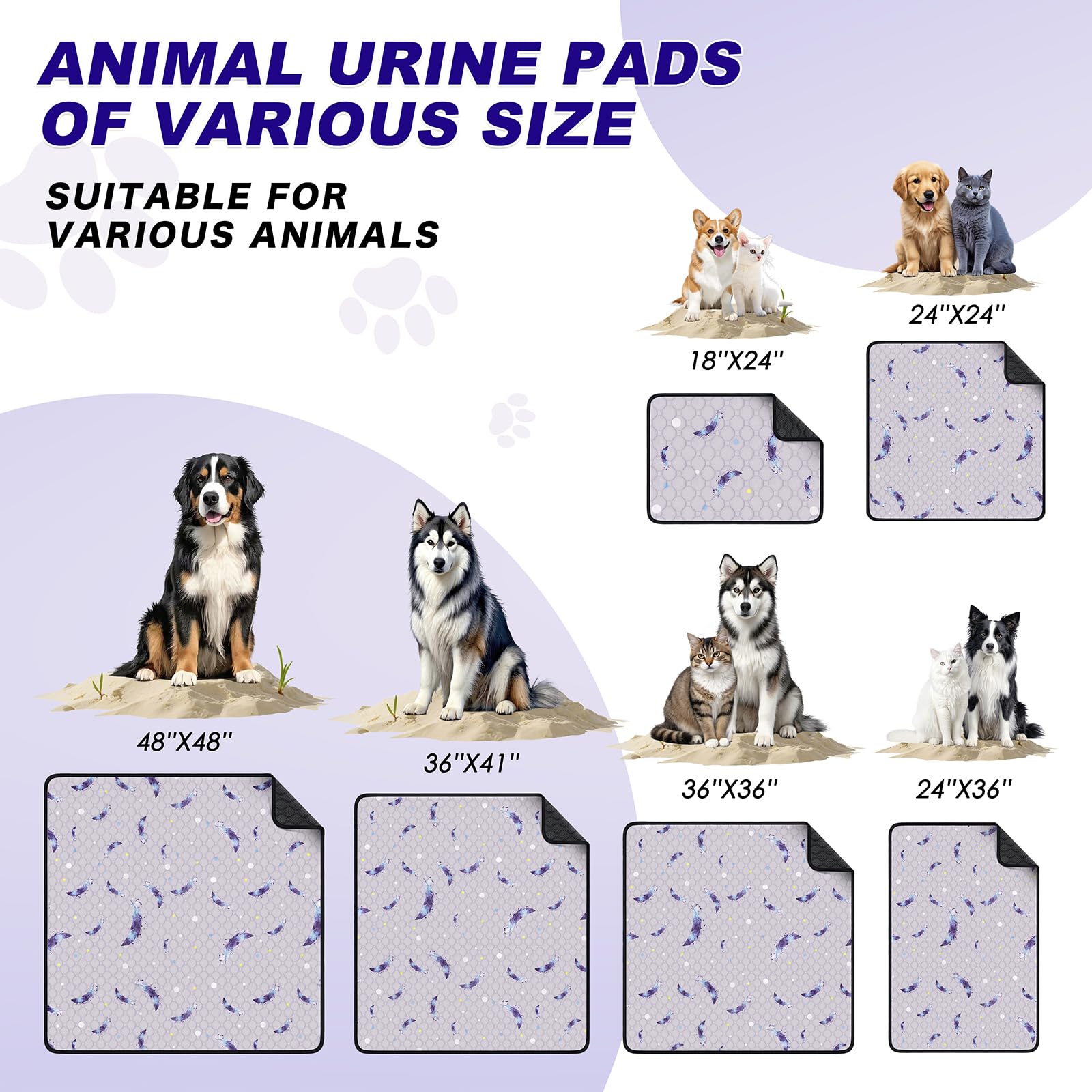 - Cute & Practical Design: Each pack comes with 2 washable puppy pads, measuring 36"x41", designed with a cute pattern that suits all dog breeds. These dog pee pads are not just functional; they also add a stylish touch to your home. Ideal for use as a dog pen mat, dog playpen mat, or pet pads for various training needs.